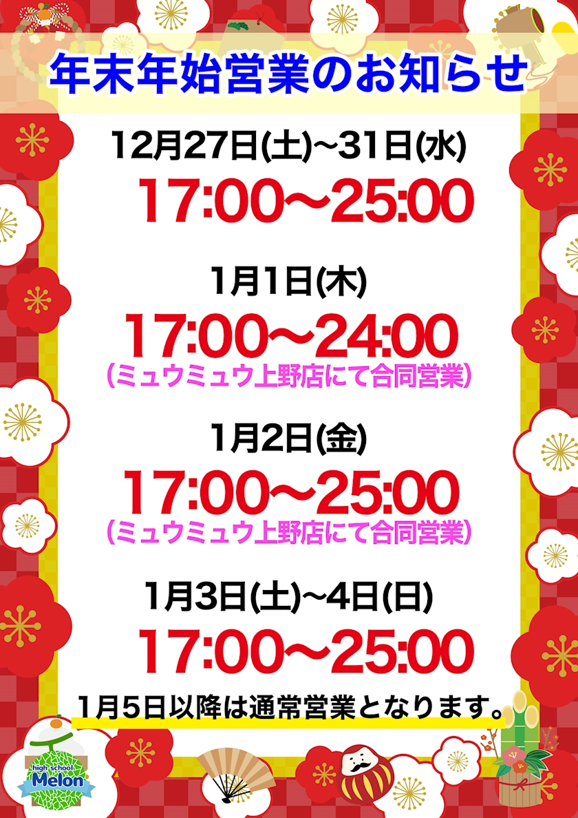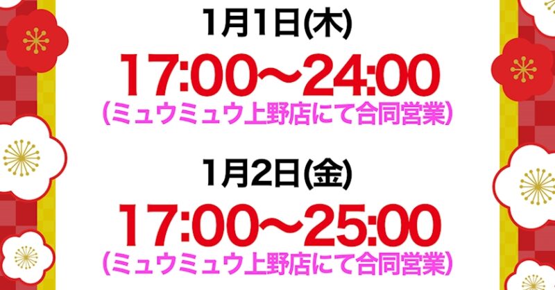 1/1(木)2(金)miumiu上野店にて合同営業